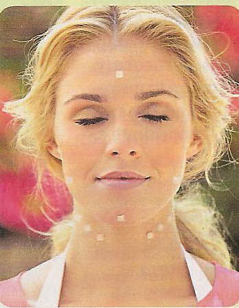 4. Using your fingers, place the magnetic facial pellets to the desired "Facial Therapy Maps"